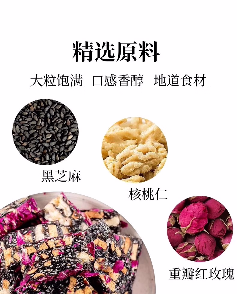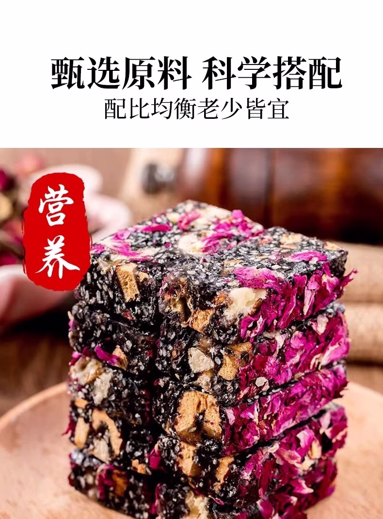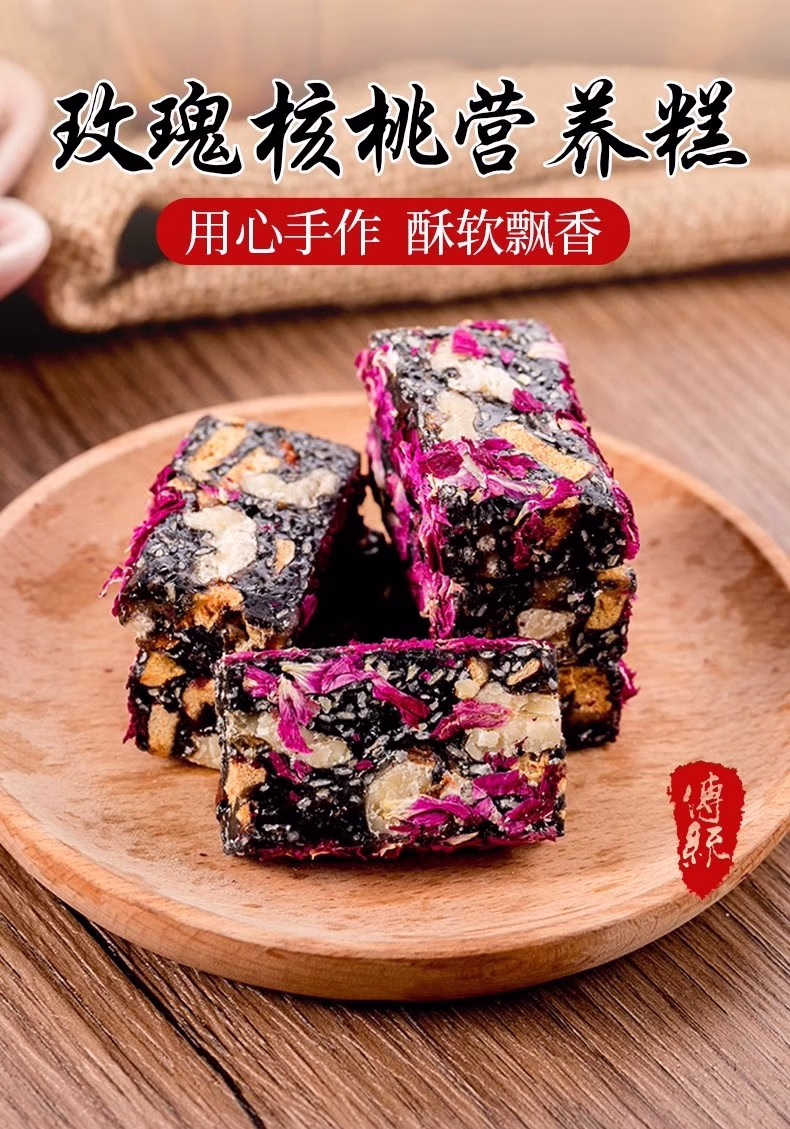 玫瑰核桃糕红枣黑芝麻糕休闲零食中式糕点点心营养生健康小吃食品 【失眠断发多】大块 1斤约30包